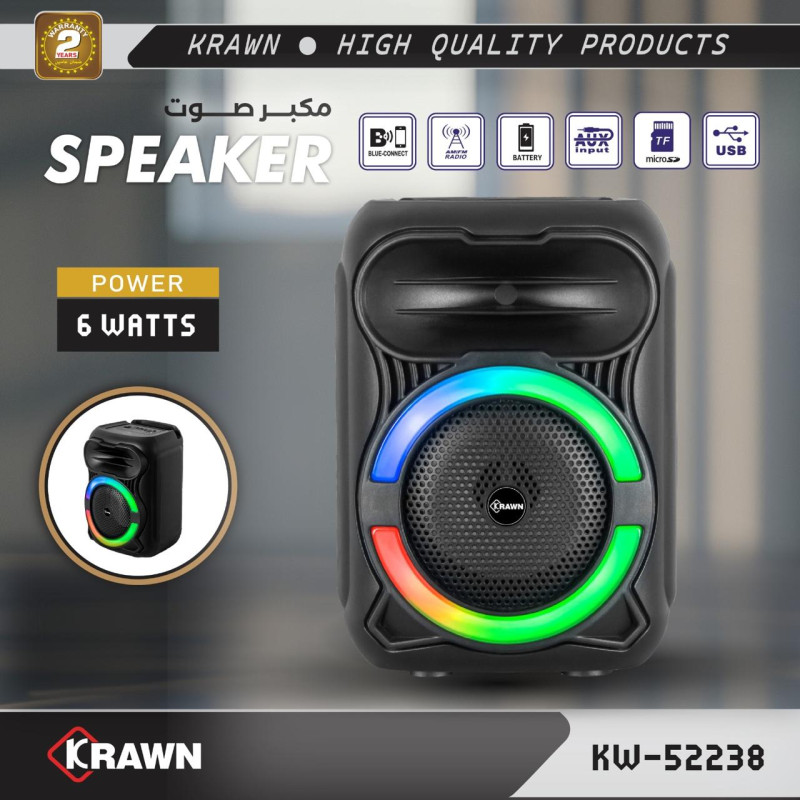 يتميز بمخرج صوت قوي بقوة 6 واط، مما يوفر تجربة صوتية متوازنة وقوية، مثالية للحفلات والمناسبات والترفيه في الهواء الطلق.
